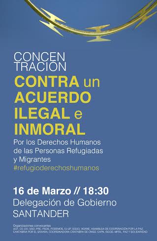 Nota: este 16 de marzo de 2016 han sido convocadas por organizaciones sindicales, políticas y sociales numerosas concentraciones por todo el territorio español para mostrar el rechazo al acuerdo alcanzado el 7 de marzo entre la UE y Turquía para la devolución en masa de refugiados y personas migrantes.