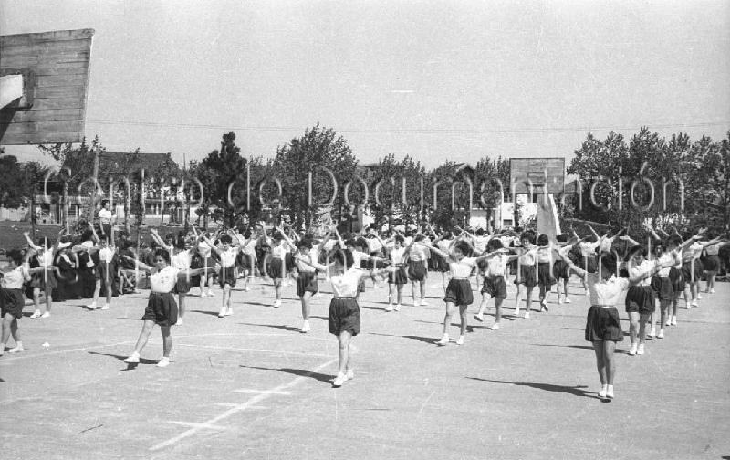 Mujeres haciendo gimnasia en la campa de La Magdalena en los años 60 || Foto: Pablo Hojas Llama (Centro de Documentación de la Imagen de Santander)