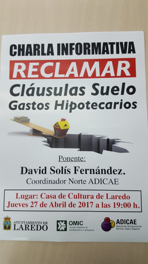 El Ayuntamiento de Laredo a través de la Oficina Municipal de Información al Consumidor (OMIC), organiza este jueves, 27 de abril, a las 19 horas, una charla informativa de acceso libre sobre las ‘Cláusulas Suelo y los Gastos Hipotecarios’ en colaboración con la Asociación ADICAE.