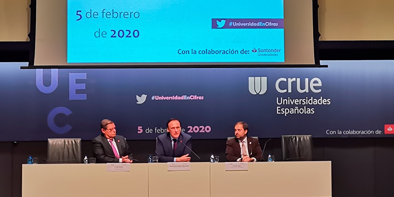 “La Universidad española en cifras” es un informe anual editado por Crue Universidades Españolas y dirigido en esta ocasión por Juan Hernández Armenteros (Universidad de Jaén) y José Antonio Pérez (Universitat Politècnica de València). Se basa en más de un millón de datos, facilitados por 48 universidades públicas y 19 privadas, y cuenta con el respaldo del Santander a través de Santander Universidades.