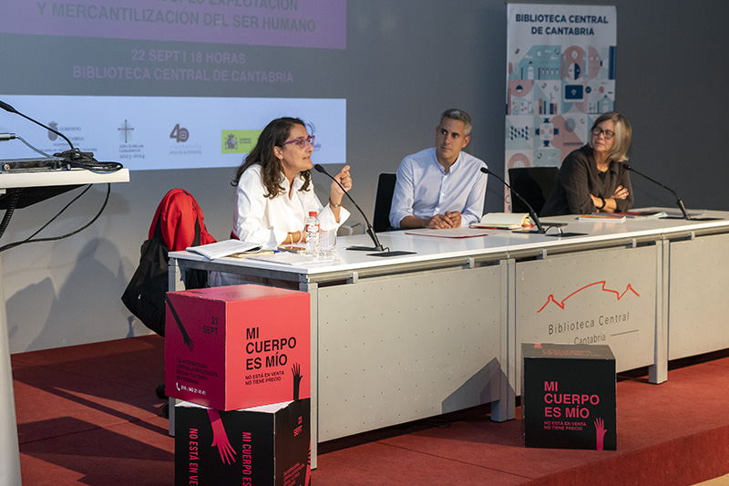 En la jornada de hoy, en la que el Salón de Actos de la Biblioteca Central de Cantabria se ha quedado pequeña para acoger al público interesado en el debate, la experta en derechos humanos y abolición de la prostitución, Marta Torres, ha ofrecido la conferencia ‘La prostitución no es sexo, la prostitución no es un trabajo, es explotación y mercantilización del ser humano’.