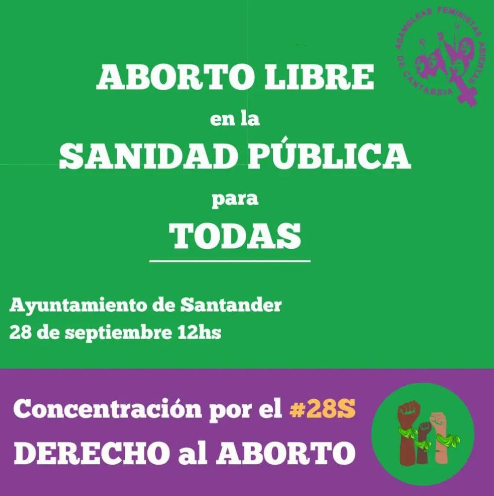 El 28 de septiembre es el Día Mundial del Acceso al Aborto. Una fecha reconocida hace décadas, pero que siempre vuelve porque es un derecho que no está conquistado en todas partes, y donde sí lo está hay riesgos de retroceder. Por esta concentración, el próximo sábado en la Plaza del Ayuntamiento de Santander, a las 12 del mediodía.