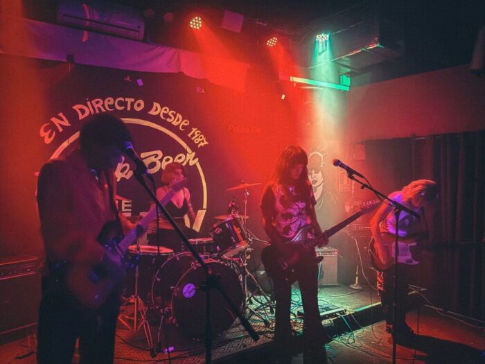Y así, entre una densa nube de humo y con un ambiente de luces pretendidamente más tenue, entran en escena los argentinos. Bajando un poco las revoluciones pero no por ello la intensidad, la banda nos envuelve entre los temas de su álbum “Entre Sombras”, recientemente relanzado en nuestro país. La cara más shoegaze/dreampop la pone Ignacio Perrotta, a la guitarra y con un tono de voz de más calidez que el de su compañera Irina Tuma, también a la guitarra y quien sin duda aporta la garra, los colmillos y la cara más punk de estos vampiros con sus tonos agudos y expresivos en contraste a su actitud estoica. Todo ello lo acompasan perfectamente Luana Giobellina al bajo y Mora Murguet a la batería, haciendo que oscilemos entre lo melancólico y lo rítmico sin perder en ningún momento la intensidad que se espera de un show como el suyo.