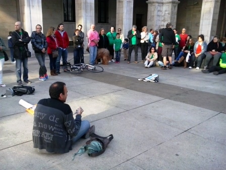 Frente a la sede de Caja Cantabria, la caja responsable de algunos de los últimos casos de desahucio que han atendido, ahora integrada en Liberbank, la PAH cierra el círculo: responde a las dudas y da consejos sobre cómo actuar.