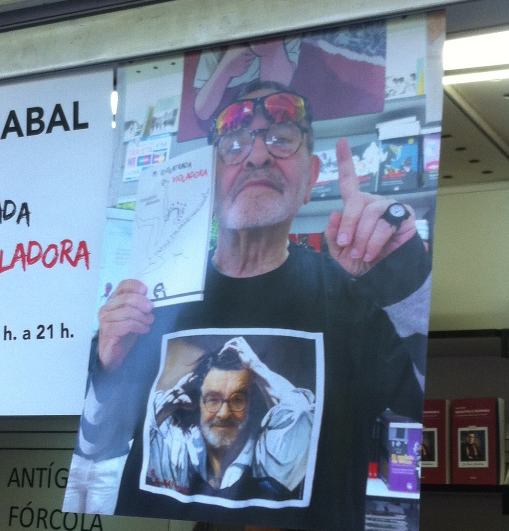 Ojo, ojo, ojo, estoy teniendo una conversación con el mismísimo, el único, el inimitable Fernando Arrabal. Para confirmar mis sospechas, procedo a olerle el aliento. Efectivamente, es él. El olorcillo a Veterano no deja lugar a duda.