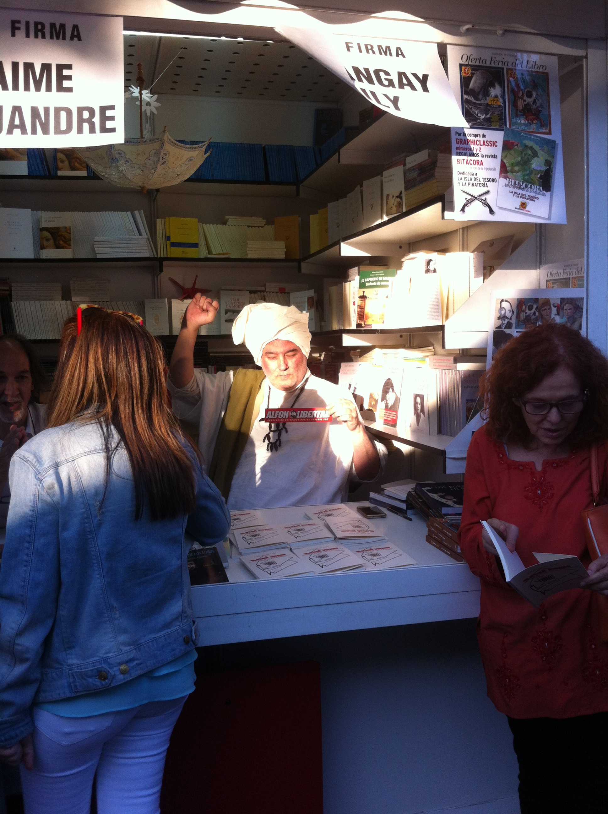 19:41h. Billares es sacado de la cafetería por dos furgones de la Policía Nacional, cuya presencia ha sido requerida por el señor churrero al grito de “Este mamón ha arruinado mi negocio y mi matrimonio”. Alrededor del furgón se arremolina buena parte de la burguesía madrileña: Ana Torroja, Hermann Tertsch, el negrito de Costa de Marfil que pide a la entrada de su Día% de confianza, y así una larga lista de personalidades de la societé madrileña. Al grito de “Billares Askatu” y “Ay que se quite el top, ay que se quite el top”, los furgones le trasladan hasta la otra punta de la Feria del Libro. Caseta 350. Al lado, un letrero iluminado con una luz tenue que sale de una bombilla de filamento: “Bienvenidos a Francia”. “Cada año hacen la Feria más grande”, musita. “Tengo hambre”, dice en voz alta.