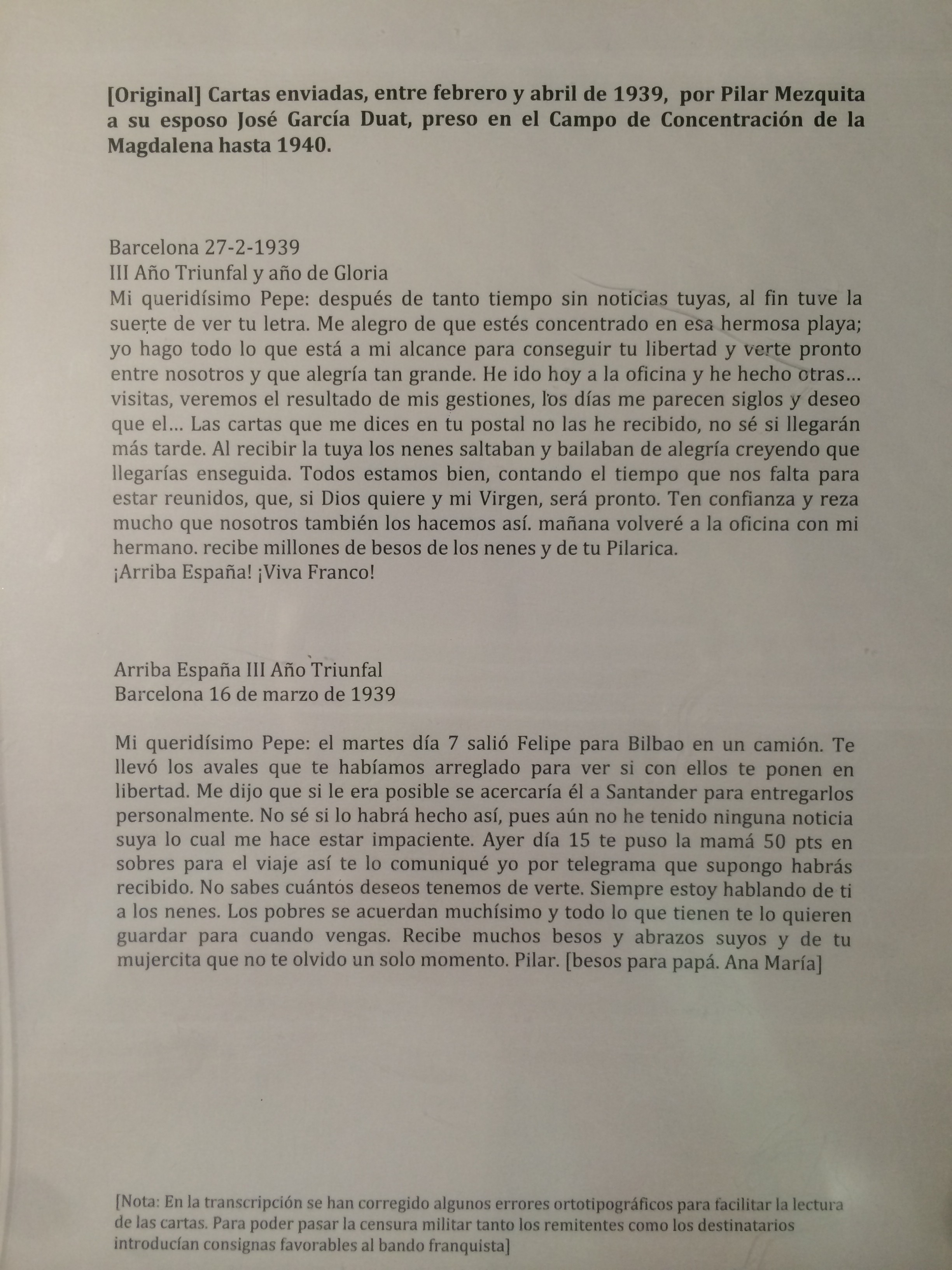 “Todos estamos bien, contando el tiempo que nos falta para estar reunidos, que, si Dios quiere y mi Virgen, será pronto. Ten confianza y reza mucho que nosotros también lo hacemos así”. Este es un fragmento espeluznante que envía una mujer a su marido que se encuentra encarcelado en el campo de concentración.