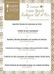 Viernes 2 de Octubre del 2015, 22 horas, empieza lo que fue una noche de ensueño, aunque alguno puede decir que fue una noche madrugada, para no olvidar, pero vamos al asunto, a contaros lo que bebimos y comimos en esa maravillosa noche en la que asistimos al enlace entre el Espazio Gastronómico Santa Luzia, en Mazcuerras, y la bodega Sel D’Aiz, dentro de los maridajes temáticos, de ese otoño casamentero en que se ha embarcado Pilar Velarde y que contó como primer invitado con otro gran emprendedor, Asier Alonso y su proyecto.