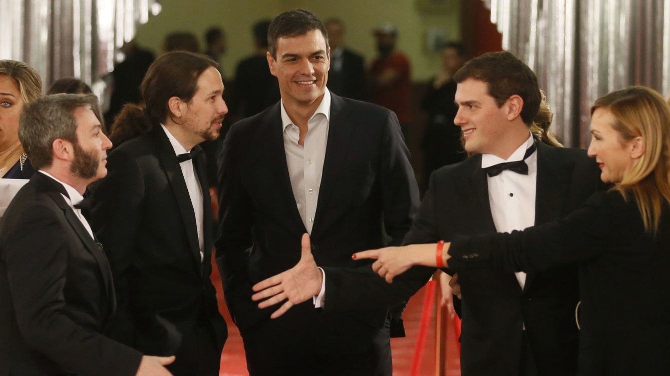 Pablo Iglesias parece no querer estrechar la mano de Albert Rivera, en la foto manipulada de la portada de El País.