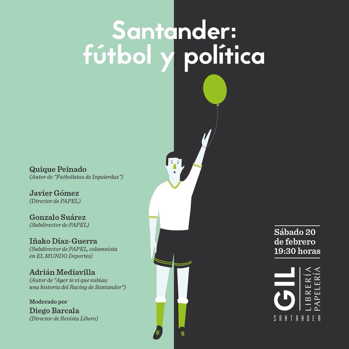 Se presenta este sábado 20 de febrero en sesión doble: a las 13.30 en La nave que late y a las 19.30 en Gil, con una mesa redonda titulada Santander: fútbol y política y moderada por Diego Barcala (director de la Revista Líbero), con la participación de Quique Peinado (autor de Futbolistas de izquierdas); Javier Gómez (director de PAPEL) e Iñako Díaz-Guerra (subdirector de PAPEL y columnista en El Mundo Deportes).