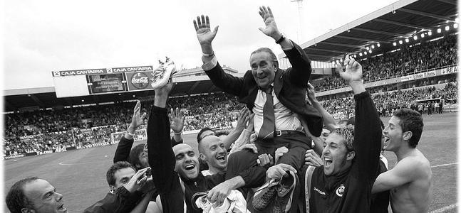 Mediavilla, publicista santanderino, glosa su figura en el libro que acaba de presentar. Del recuerdo del entrenador salvavidas del Racing una, dos, tres y hasta cuatro veces. Pero sobre todo de aquella persona cercana y afable, que devolvía todos los saludos, se paraba con el aficionado y charlaba de fútbol. El buen amigo que no fallaba a la cita en los bares de los bajos del Casino, en el Erika a la hora del blanco, bien rodeado de los suyos.