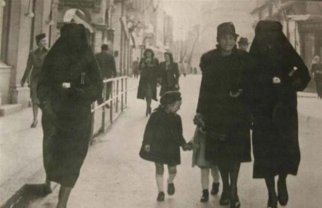 Mujer musulmana cubre con su velo la estrella amarilla que identifica a su vecina como judía para protegerla de la persecución. Sarajevo, la antigua Yugoslavia. [1941].