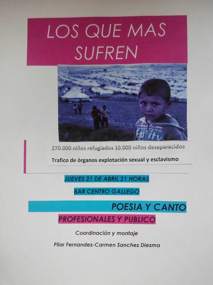 Este Jueves 21 de Abril a partir de las 21 hrs, de la mano de Pilar Fernández y Carmen Sánchez Diezma, será dedicado a «Los que Más Sufren», -Los Niños-, en tránsitos migratorios o víctimas de la codicia humana actual, según sus propias palabras.