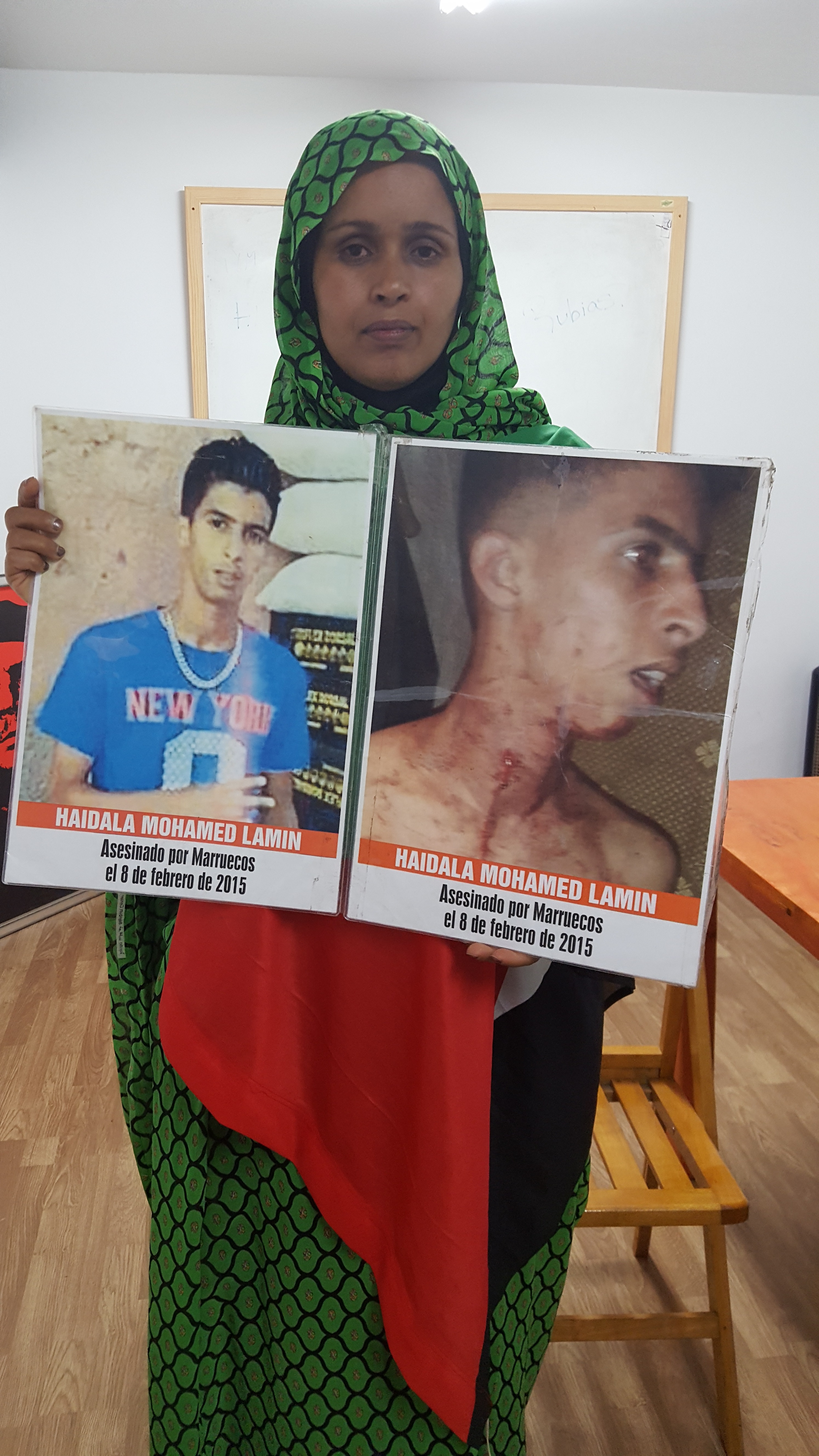 La lucha de Takbar Haddi comenzó el 8 de febrero de 2015. Ese día murió su hijo, Mohamed Lamin Haidala, un joven saharaui de 20 años que 8 días antes había recibido una paliza por parte de unos colones marroquíes, uno de los cuales le clavó unas tijeras en el cuello.