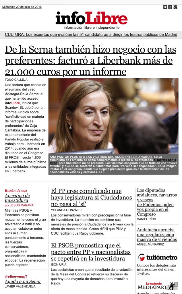 Portada de #infoLibre para soci@s: De la Serna también hizo negocio con las preferentes. https://t.co/akdWwUZ3o7 pic.twitter.com/HovEOJiLVB
