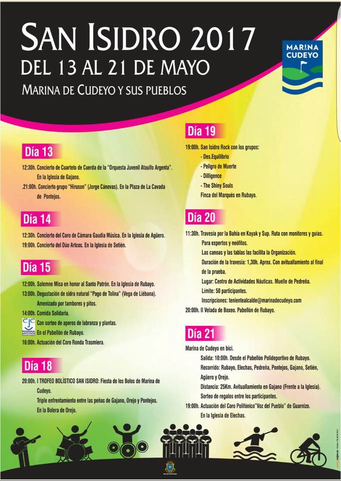 Este lunes 15, es el día grande las fiestas de San Isidro Labrador, patrón de Marina de Cudeyo, para el que se han programado actividades como la misa, degustación de sidra natural, pito y tambor, comida solidaria y actuación coral.