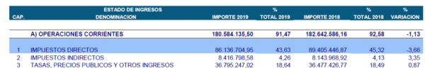 Si bien los impuestos directos bajan un 3,66% respecto a los anteriores presupuestos (dejándose de ingresar más de 3 millones de euros), en cambio sí que se dan subidas en los impuestos indirectos y en las tasas y precios públicos. Ambas suben un 3,35% y un 0,87%, respectivamente, es decir, sumados, un 4,22% superior al 3,66% anunciados.