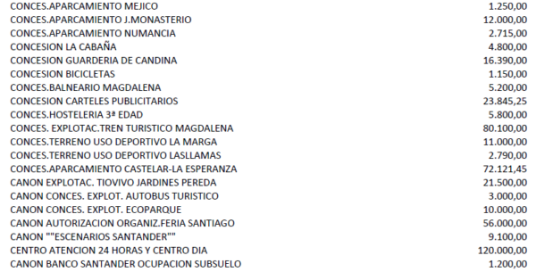 En el otro lado, el de los ingresos, el Ayuntamiento de Santander dispone de espacios públicos por los que recibe ingresos en forma de canon de empresas que los utilizan para poner negocios.