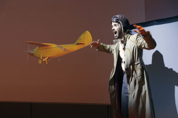 ‘Amarillo caído del cielo’ es un espectáculo multimedia contado en directo, en off y en primera persona por su principal protagonista, Armand Lotti, mientras dos personas actúan como manipuladores y técnicos controlando los efectos audiovisuales y la iluminación en directo.