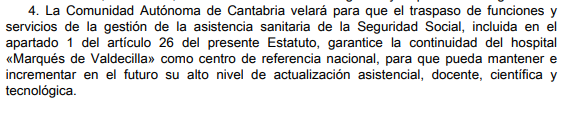 En el propio Estatuto de Autonomía para Cantabria, aprobado en 1981, se menciona expresamente que Valdecilla es un centro de referencia nacional: Disposición adicional segunda, artículo 4