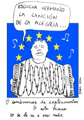 Y la crisis de los refugiados ha sido uno de los asuntos que más ha ilustrado en sus duras viñetas El Paisá García, con especial atención a la actitud de la Unión Europea