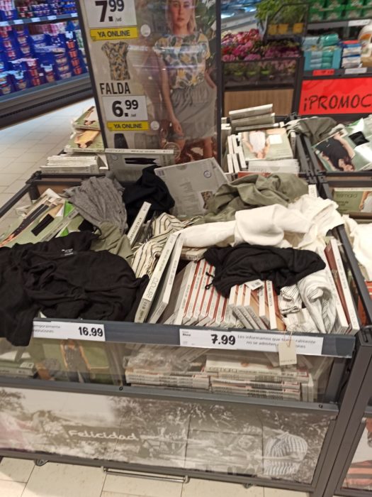 Y añaden que además de poner en peligro a los trabajadores, también puede ser a los clientes, al no informarse de que no pueden abrir los embalajes, y se ha comprobado que usuarios los han abierto, sacando ropa de ellos. Algunos estaban ya abiertos y expuestos al público.