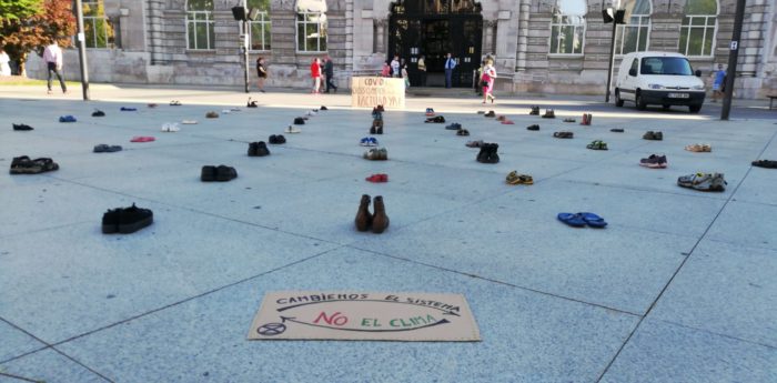Con el lema «Covid hoy, crisis climática mañana, actuad YA», el nodo cántabro del movimiento internacional de desobediencia civil pacífica Extinction Rebellion (XR) vuelve a tomar hoy las calles de Cantabria. La acción ha consistido en cubrir la plaza del Ayuntamiento de Santander de zapatos, exigiendo participación ciudadana y actuación inmediata contra la emergencia climática en el proceso de reconstrucción tras la crisis de la COVID-19.