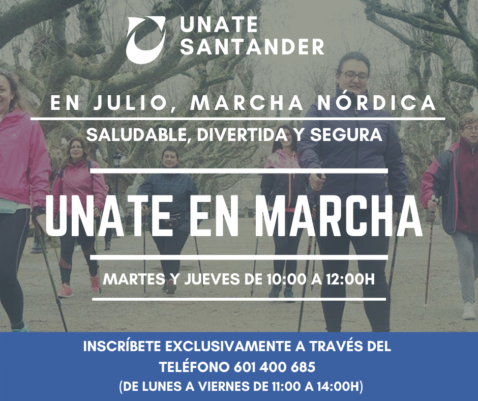 Este mes de julio 2020, la UNATE propone unirse a su colaborador Carlos Vejo Castanedo dos veces a la semana para hacer marcha nórdica, que consiste en caminar siguiendo una técnica concreta e incorporando un tipo específico de bastones, similares a los del esquí.