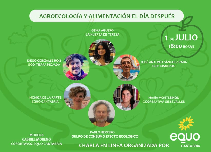 ‘Verdes Equo Cantabria’ han querido poner en el centro, sobre todo tras esta pandemia, a las personas y a la ecología dentro de su acción política. Por ello organizan ya su cuarta conversación telemática, en la que debatirán sobre algo básico para nuestra vida: la alimentación, con una cita el 1 de julio a partir de las 18 horas en su canal de Youtube.