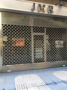 Hoy, a medida que el peatón se adentra por esta calle, las persianas echadas, los locales en alquiler y los escaparates llenos de carteles anunciando rebajas, promociones e incluso rastrillos, son los protagonistas.