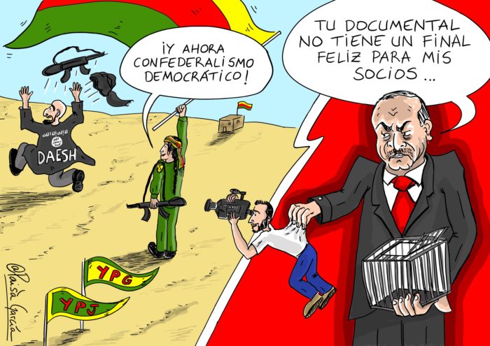 La base de esta sentencia es el documental «Roza – La tierra de los dos ríos» sobre la revolución de Rojava, que Cebe rodó en 2016.