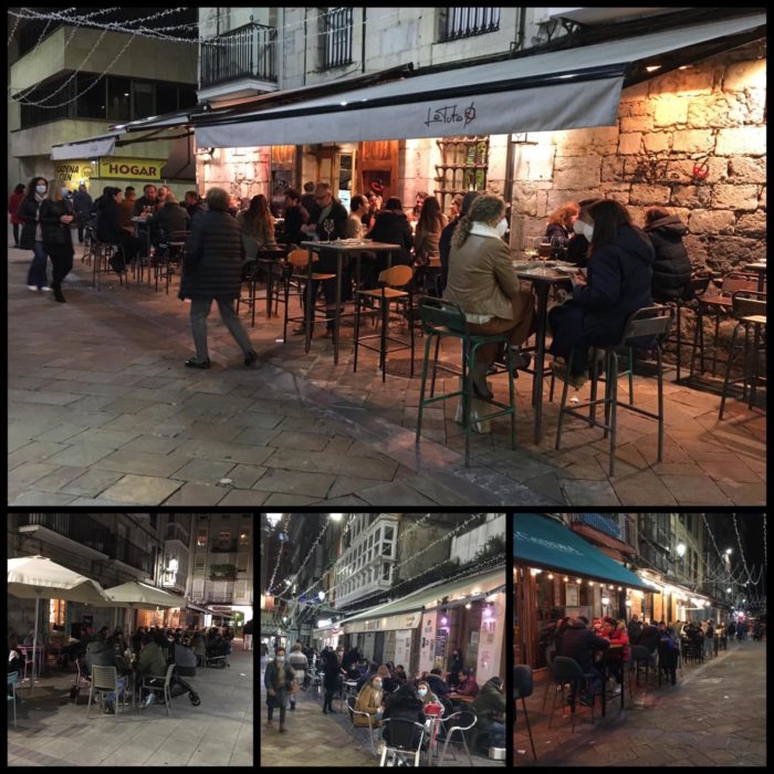 Los hosteleros se han agarrado a esta única opción de mantener sus puertas abiertas y encontramos terrazas adornadas con lucecitas, mesas con velas y pequeños jarrones y, entre las mesas, estufas de esas que consiguen subir unos grados la temperatura de la calle.