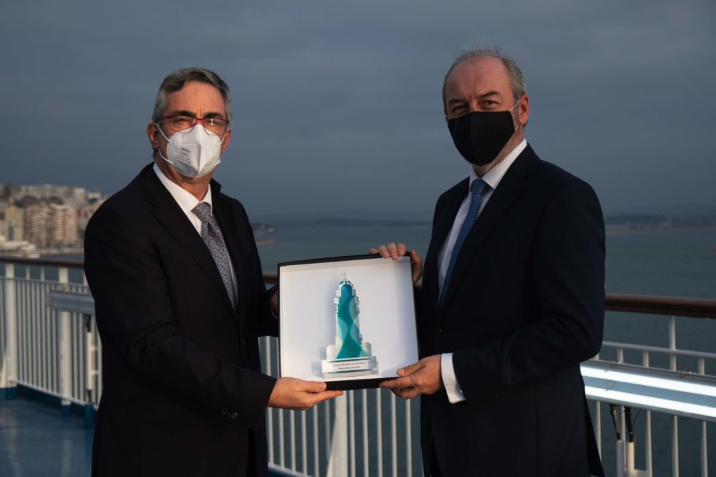 Francisco Martín. Consejero de Innovación, Industria, Transporte y Comercio del Gobierno de Cantabria, Gema Igual, alcaldesa de Santander y Santiago Díaz, director del Puerto de Santander, fueron los únicos invitados a un evento cuyo aforo se redujo al máximo por motivos sanitarios. “Es muy difícil estar más de 40 años siendo fieles unos a otros” dijo Martín sobre la relación e Brittany Ferries con Cantabria. “No solamente apostando como escala para sus mercancías y pasajeros, sino también para la reparación de sus barcos en Astander” continuó. Gracias a esa apuesta, Santander es la escala con más pasajeros del norte de España. “Fidelizar a Brittany Ferries es fundamental para nosotros” abundó Gema Igual. “Por eso es tan importante y tan acertado un premio como el que concede el Clúster MarCA” finalizó la alcaldesa.