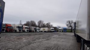 Sobre las once de la noche pudieron seguir viaje los que estaban en Aguilar de Campoo. Muchos se dirigían hasta la plataforma logística de Penagos, centro de distribución de Carrefour para todo el norte, entre otras cosas. Los que tenían previsto cargar o descargar por la tarde, tuvieron que hacer noche y esperar para hacerlo a lo largo del martes.