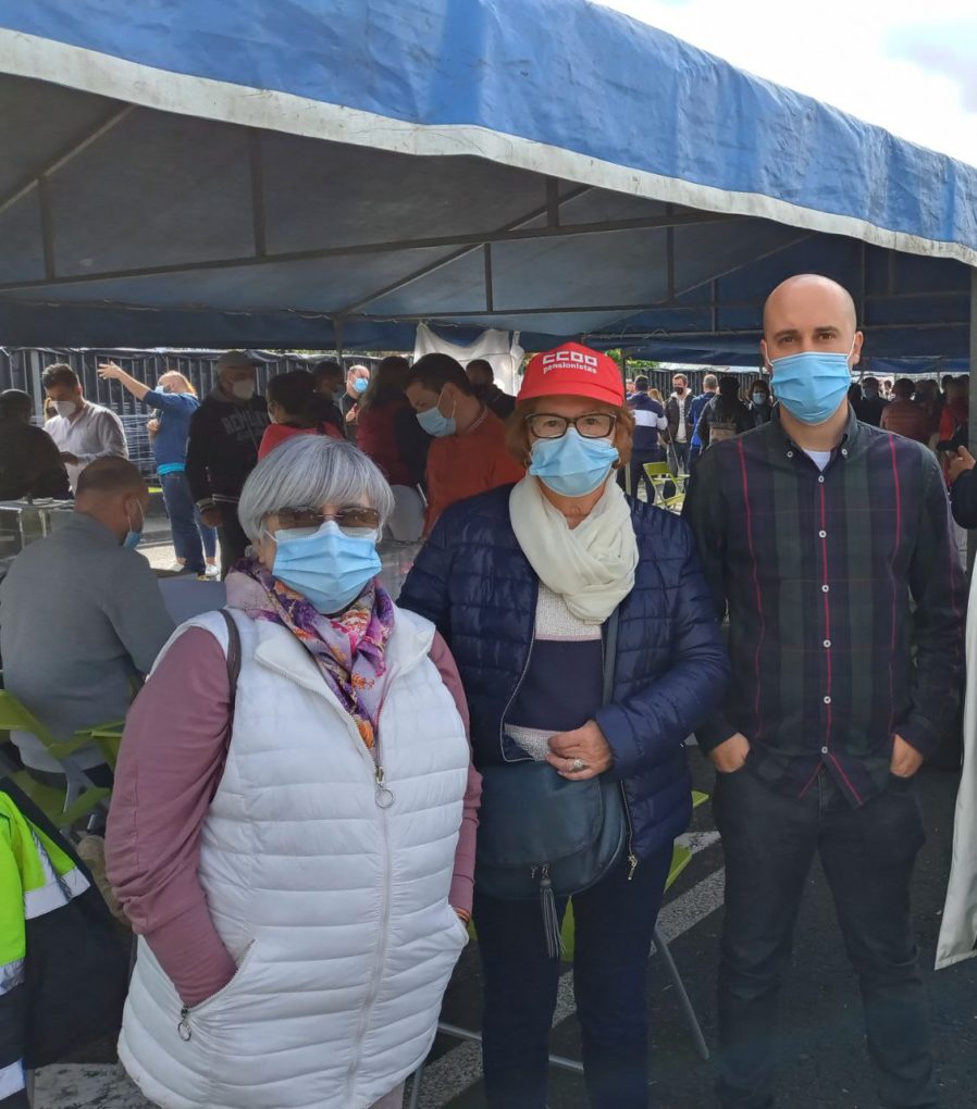 Ruiz Salmón, junto a Carmen de Diego, también dirigente autonómica de IU, y Rosario Zorrilla, militante de IU en Colindres y expresidenta del comité de empresa de la planta (ahora jubilada), ha acompañado en la jornada de votación a la plantilla, dentro de la labor de acompañamiento que han realizado a los trabajadores cada día desde el arranque de la huelga indefinida el pasado lunes.
