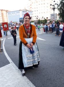 Fue hace 18 años cuando esta mujer se empezó a tomar en serio esto de ser ‘modista del pasado’. Iban a celebrarse los Baños de Ola y el grupo de extranjeras con el que se reunía periódicamente, porque Vera es holandesa, le dijo que iba a haber un concurso de vestuario y que igual eso le podía interesar. «Yo no sabía nada, ni tenía telas, pero entonces, con unas sábanas blancas de algodón que traje de Holanda, en unos días me hice un traje con el que gané el primer premio. Ese fue el primer vestido de la colección. Antes ya había cosido, pero nada de esto. De niña, mi padre era zapatero, y con los restos de cuero yo hacía zapatos y bolsos para las muñecas. No me gustaba jugar con ellas, sólo hacerles vestidos, luego sí que me hacía alguna cosa. También bordaba y, más adelante, cuando tuve hijos, les hacía siempre los disfraces de carnaval. Yo he sido autodidacta, pero cuando la gente que entiende ve mis trajes, dicen que están muy bien confeccionados».