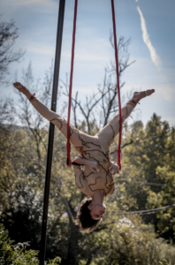 ON es un espectáculo de teatro físico y danza aérea sobre la disciplina de trapeze dance.
