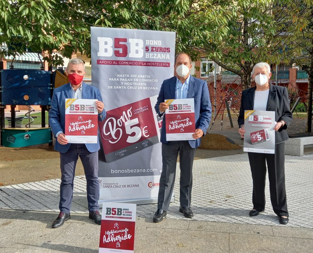 El Ayuntamiento de Santa Cruz de Bezana, en colaboración con la Cámara de Comercio de Cantabria, pone en marcha la segunda fase de la campaña Bono 5 euros Bezana, que permanecerá activa del 16 de septiembre al 15 de noviembre. Durante este periodo se pondrán en circulación un total de 15.000 bonos, por valor de 5 euros cada uno de ellos.