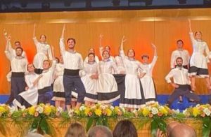 A ellos les tocó participar el sábado por la tarde. Y había nervios. Muchos. Ataviados con su indumentaria azul marino y blanco, con aires marineros, y calzados con sus habituales alpargatas, subieron con paso firme al escenario para romper el hielo con la interpretación de Ave Maris Stella, de Tine Bec, para seguir con la obra obligada, que en esta ocasión era Alpargatas Blancas de David Azurra, donde los integrantes del coro sorprendieron al público con una cuidada puesta en escena que incluía bellos movimientos perfectamente coordinados. A los jóvenes integrantes de esta agrupación coral se les veía seguros sobre el escenario y el público respondió con sonoros y largos aplausos. Así, llegó el momento de interpretar la versión armonizada de Viento del Norte que el coro encargó a Alesandro Cadario, una obra muy trabajada que dio paso finalmente a la segunda interpretación coreografiada de la tarde: De ronda por Aragón, de Josu Elberdin, con la que los coralistas despidieron su participación en el certamen.