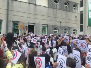 A la protesta acudían también profesores de otros centros más alejados físicamente. El Faradio hablaba con un profesor del instituto Pereda que afirmaba smarse a la concentración por una cuestión de solidaridad. «Es inconcebible que al lado de una gasolinera se pueda poner otra gasolinera y, menos, pared con pared con un centro educativo. Esto puede ser un mensaje para el mundo educativo. No nos importáis y nos da igual, podemos poner una gasolinera o una central nuclear. Entiendo que es un problema de cómo se entiende la educación en este país y en esta comunidad autónoma».