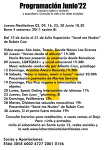 El Laboratorio de Identidades, ubicado en Santa Lucía,12, acaba de presentar su programación de actividades para el mes de junio.