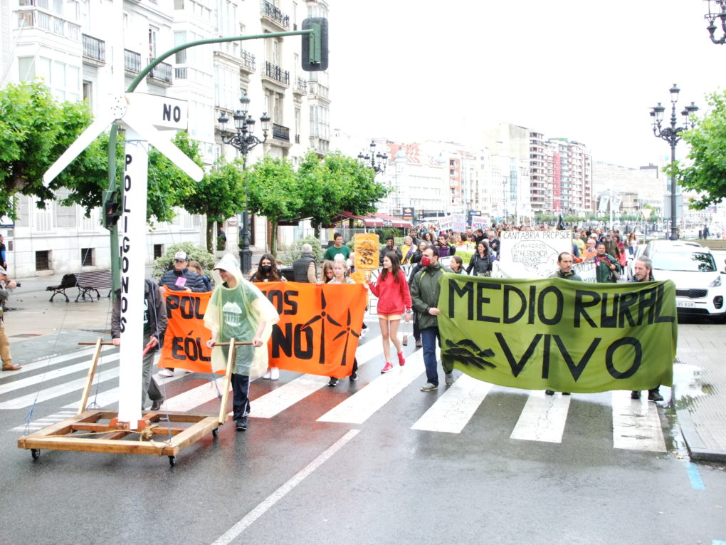 Asimismo, el fin de semana se produjo una manifestación contra los proyectos eólicos, bajo el lema «Sí a un medio rural vivo. No, a los polígonos eólicos», que discurrió desde Correos hasta el Gobierno de Cantabria , , donde denunciaron que el mapa de exclusión eólica presentado en el Parlamento el pasado mes de abril, muestra que sólo un 3% del territorio se verá afectado por la industria eólica, ocultando vías de acceso, torres de alta tensión o subestaciones eléctricas, o que afecta a más del 60% de los municipios de Cantabria,
