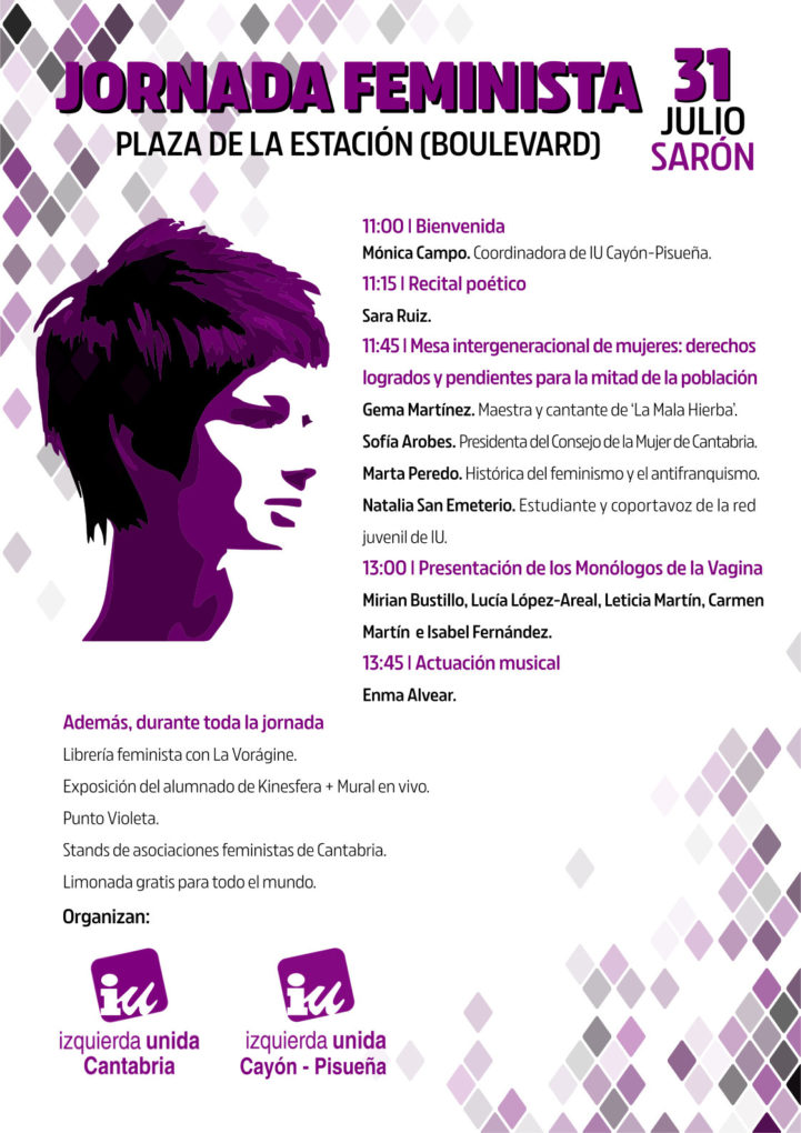 La asamblea local de Izquierda Unida Cayón-Pisueña cierra el curso político con una jornada feminista el domingo, 31 de julio, en el boulevard de la Plaza de la Estación de Sarón.