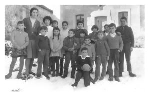 Elisa es la maestra que aparece en la foto más antigua que se ha recuperado de la escuela y donde se aprecia un grupo mucho más grande de alumnos. Cada año se acercaba hasta el pueblo un fotógrafo que inmortalizaba a los escolares en grupo o divididos: por una parte los niños y por otra las niñas. También hay quien conserva una foto individual delante de uno de los mapas que colgaban de las paredes.