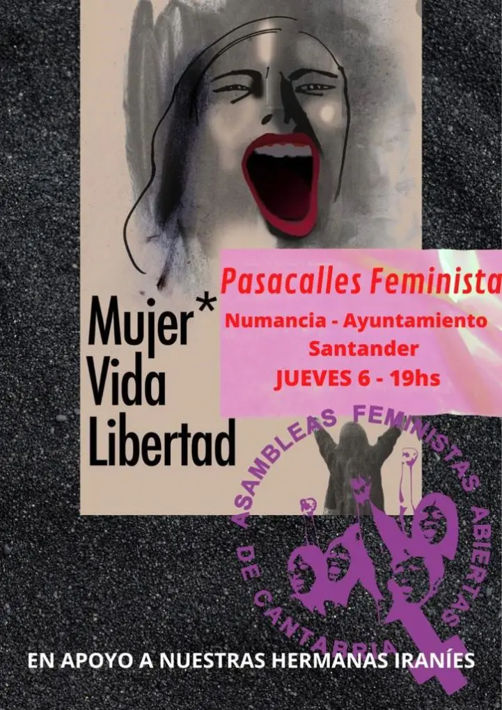 Las Asambleas Abiertas Feministas de Cantabria llaman a solidaridarse con las valientes mujeres iranies que al grito «Mujeres, vida y libertad», este jueves, seis de octubre a partir de las 19:00 horas, participando en el pasacalle que saldrá desde la Plaza Numancia de Santander para llegar hasta el Ayuntamiento de la ciudad.