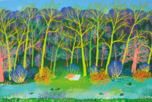 ‘El sueño de los dos pájaros’ reúne una serie de pinturas de reciente producción que nos introducen de lleno en el mundo fantástico y genuino de la autora, en el que se mezclan sus imaginarios vividos tanto en su Cantabria natal como en Senegal, donde ha residido durante cuatro años.