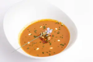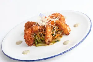 En la presente edición, y con un precio de 59 euros por persona, el Restaurante Astuy ha diseñado un menú compuesto por 6 platos, entre los que se encuentra un tiradito de salmón crocante con emulsión de mango y leche de tigre; una crema de mejillones al natural con manzana verde y cilantro; langostinos crujientes sobre verduritas al wok con mayonesa tibia de ajo negro y mostaza; sorbete de limón al cava; 450 gramos de langosta de Isla cocida o a la plancha y el famoso soufflé de la casa.