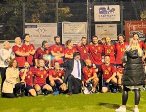 Antes de ir, entrenaron con el resto de seleccionados en Madrid, en el centro ESC, el complejo de referencia de la Liga y vistieron la equipación oficial de la selección española. El resultado final, 3 a 1. Un buen cierre de marcador, teniendo en cuenta que la selección de escritores-futbolistas alemana lleva años en marcha entrenando habitualmente y la nuestra nació unas semanas antes de competir.