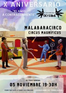 Malabaracirco estará con su Circus Magníficus en la sede de la Asociación Cultural Octubre el sábado 5 de noviembre a partir de las 19:30 con un pase para todos los públicos cuyas entradas están a la venta al precio de 6 euros.