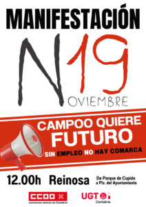 CCOO y UGT recalcan que esta convocatoria responde a un acto de responsabilidad, para defender la comarca antes de que sea tarde, y continúan animando a la participación en esta manifestación para reivindicar futuro para Campoo.